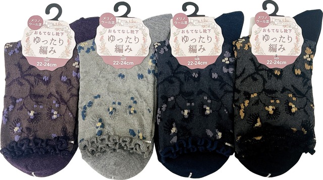【秋冬新作】【小さめ22-24cm】婦人サイド花柄ゆったりクルー