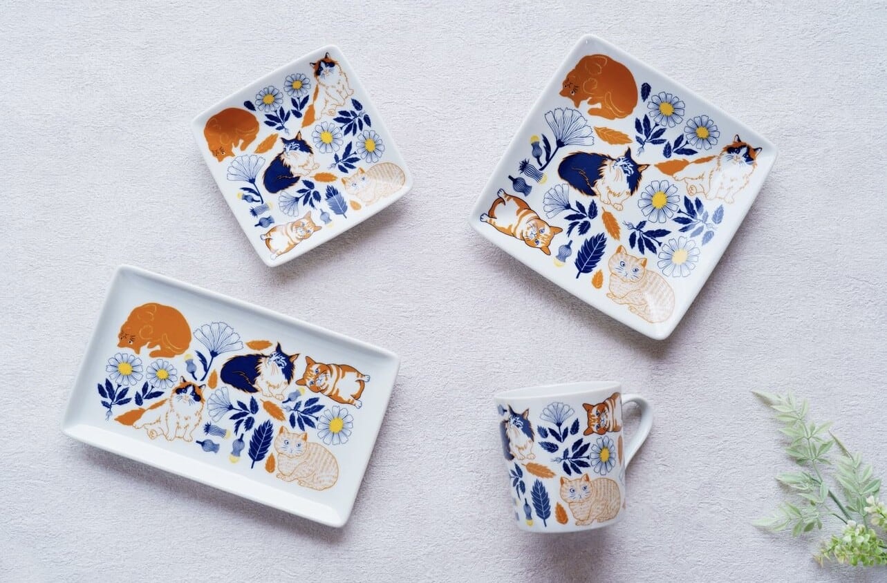 ボタニカルな雰囲気と独特な猫たちが、彩りあるテーブルを作り上げます。