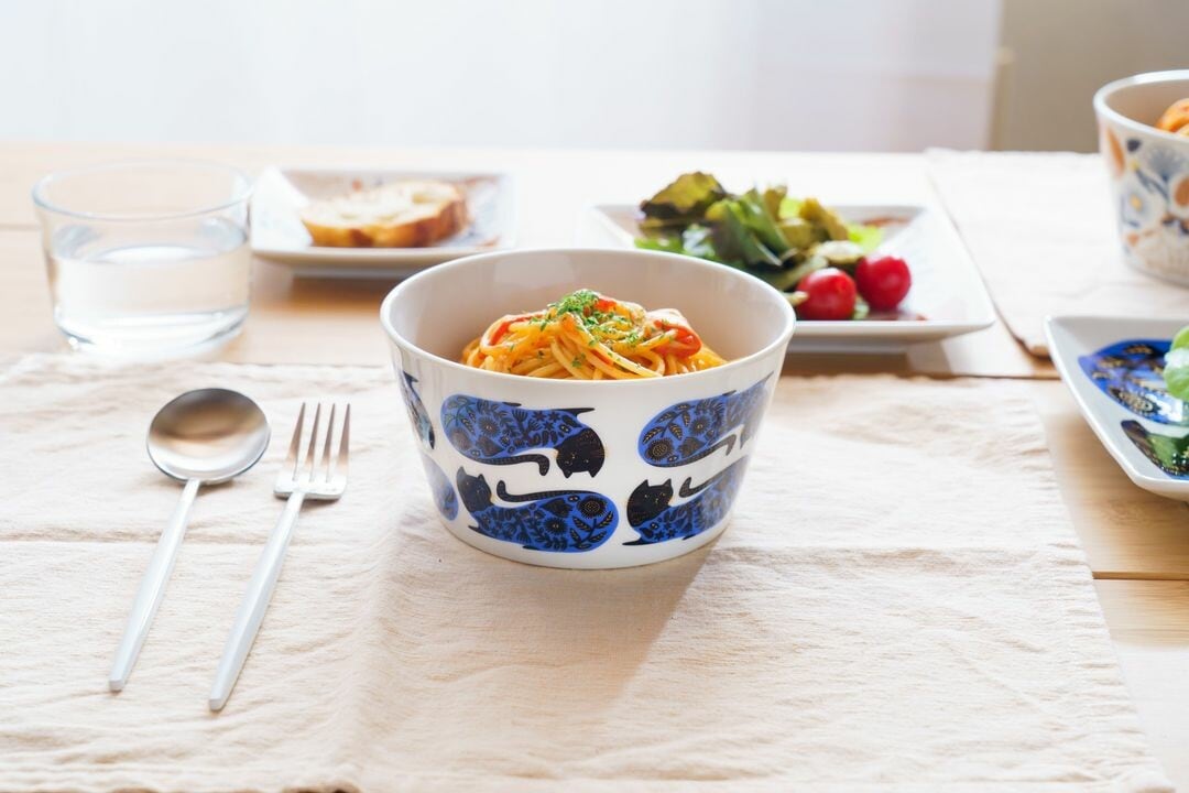 エキゾチックな猫と体に描かれた模様が、うつわを引き立て食卓を華やかに◎