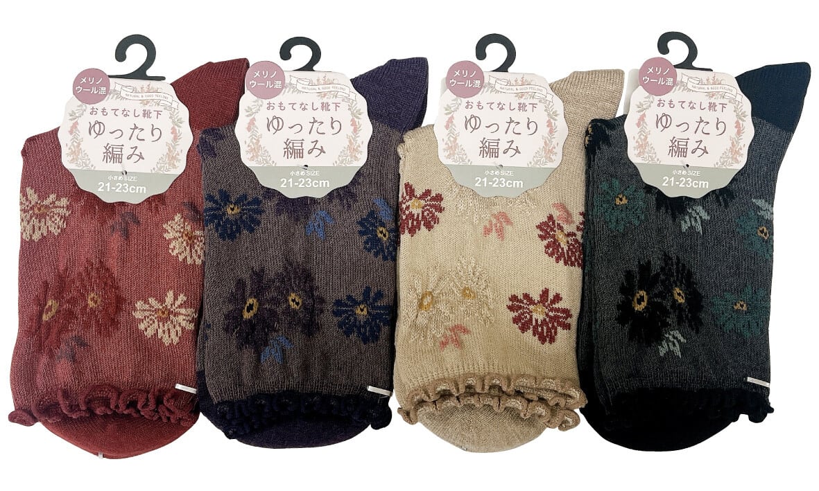 【秋冬新作】【小さめ21-23cm】婦人花柄ゆったりクルー