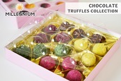 2025年新ブランド!5種類のトリュフチョコレートを3個ずつ入れたアソートボックスになります。バニラ、いちご、ヨーグルト、バジル、チェリー、オレンジ香料使用。紫色:ブラックカラント味、ピンク色:チェリー味、黄色:オレンジ味、緑色:バジルといちご味、濃いピンク色:ブラックチョコレート味