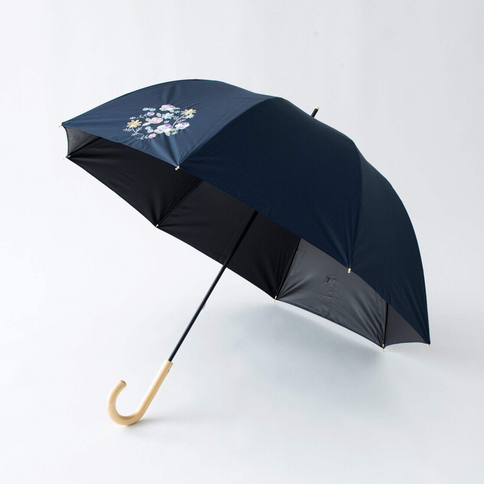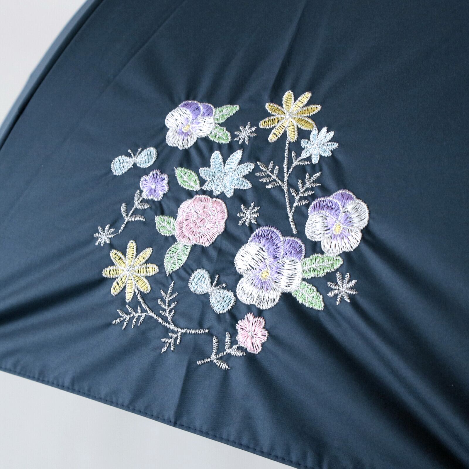 【遮光&遮熱】黒コーティング晴雨兼用傘 55cm手開き『ブーケ刺繍』【2025SS】
