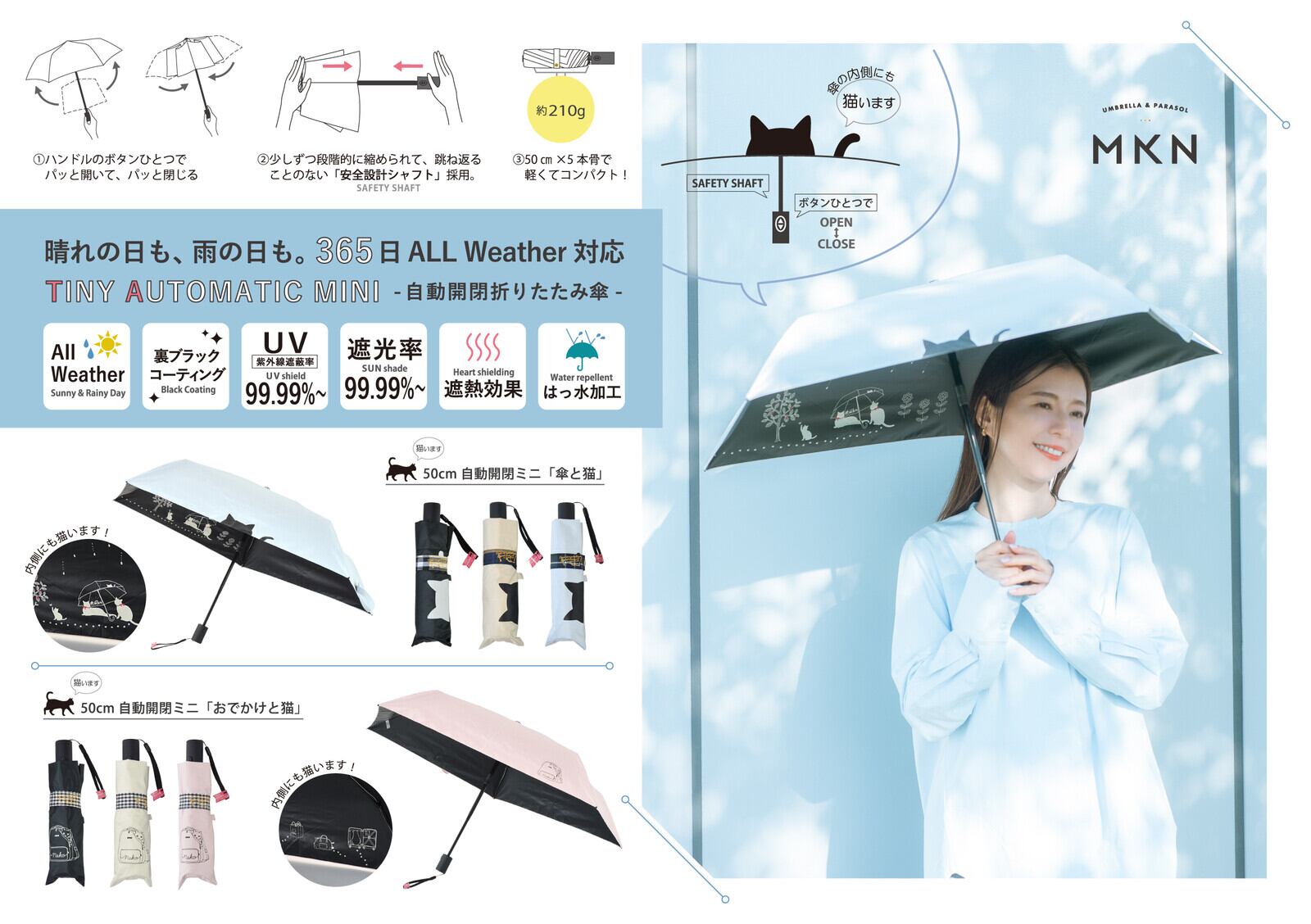 【2025A/W新作猫傘】裏ブラックコーティングシリーズ/遮光&遮熱に優れた晴雨兼用折りたたみ傘/ALL Weather TINY AUTOMATIC MINI