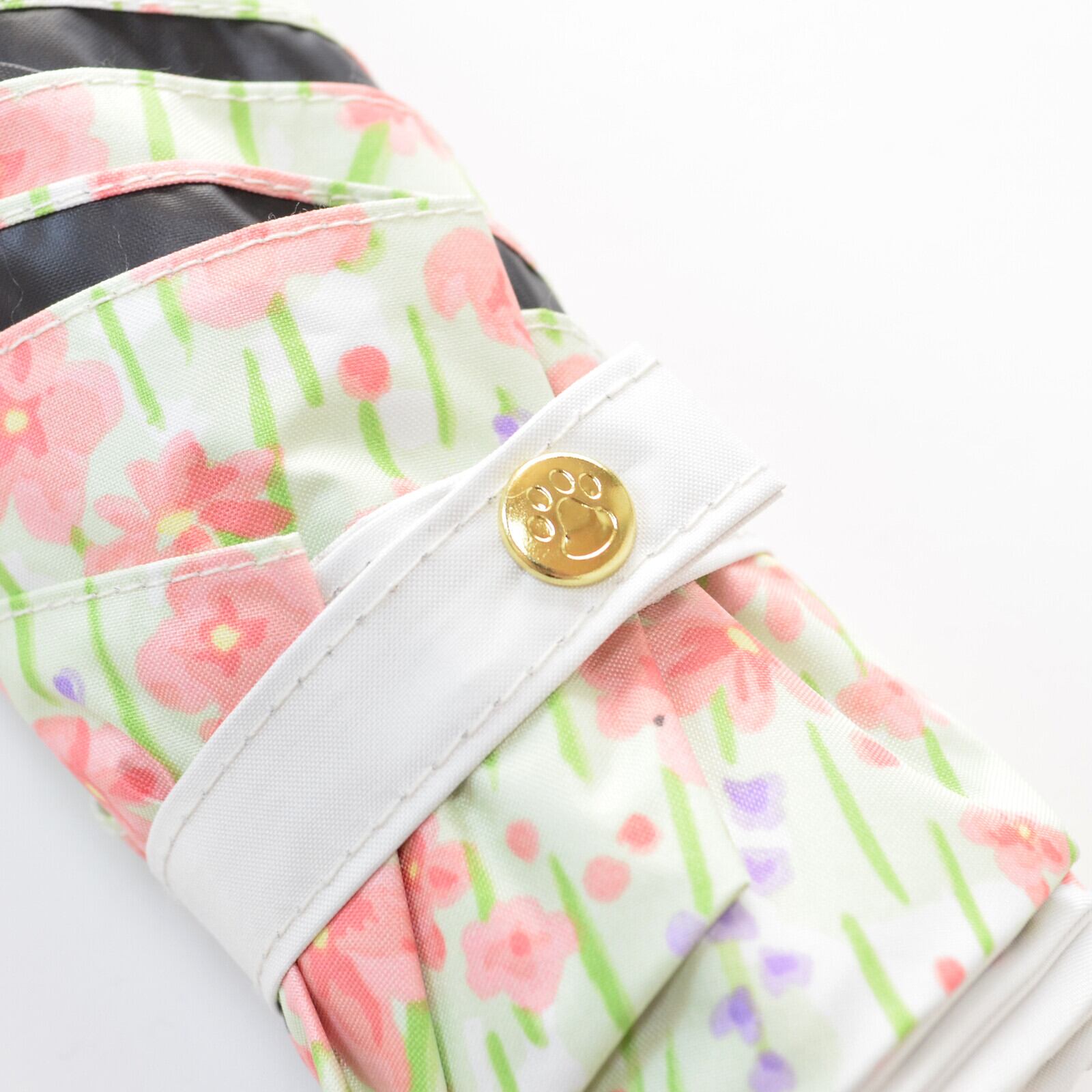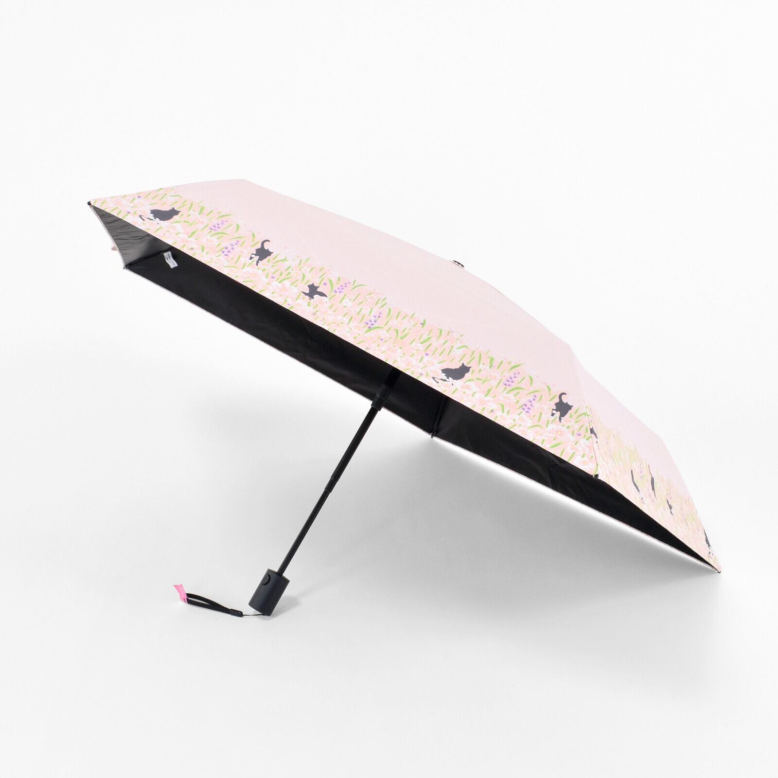 50cm×5本骨ミニ黒コーティング晴雨兼用・自動開閉ミニ傘「お花畑と猫」